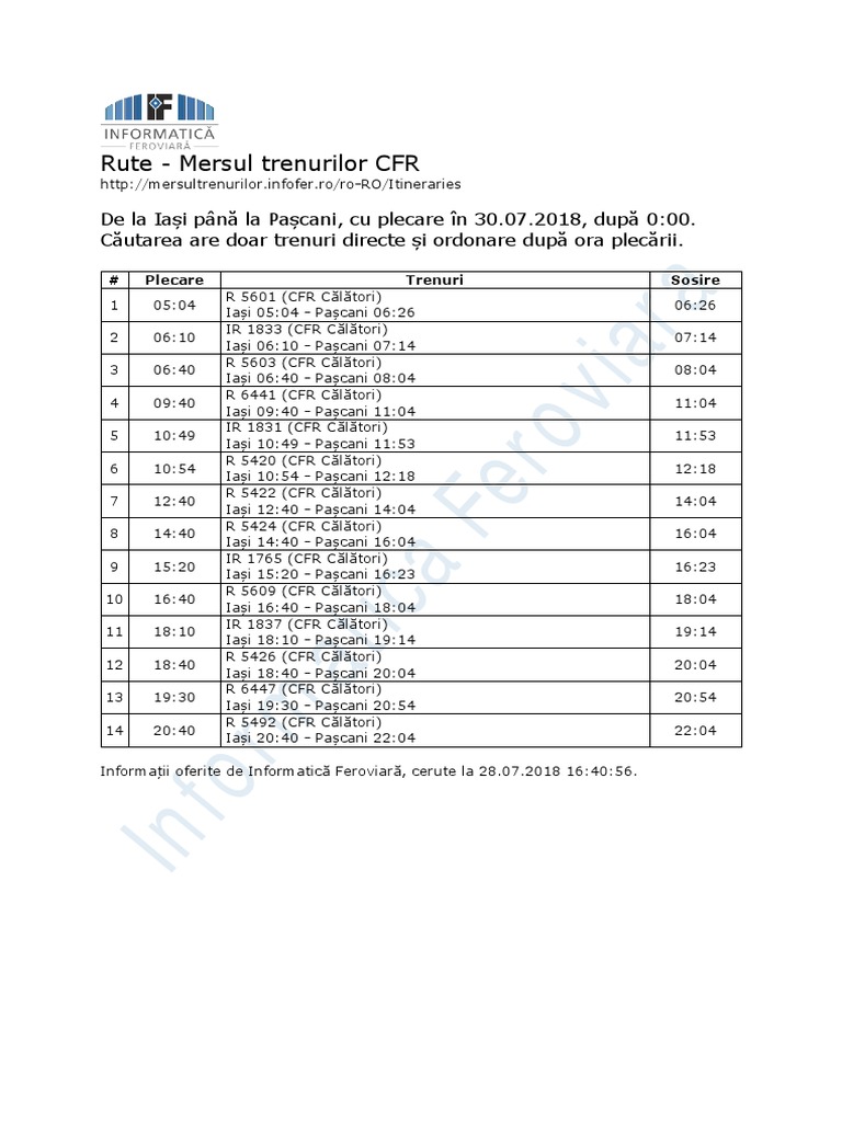Cfr Calatori Mersul Trenurilor Iasi Pascani