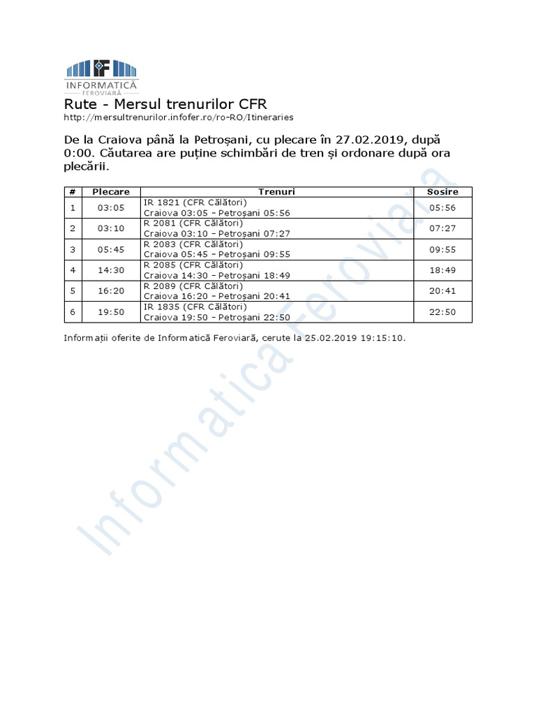 Informatica Feroviara Rute Mersul Trenurilor Cfr