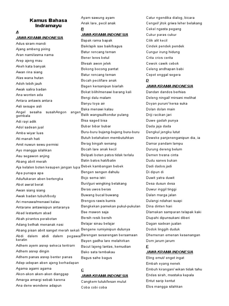 Kata Kata Bahasa Jawa Indramayu