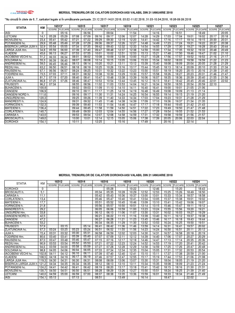 Mersul Trenurilor De Calatori Dorohoi Iasi Valabil Din 21 Ianuarie