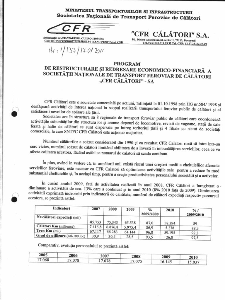 Ca Sntfc 17 01 2011 Reorganizare Si Redresare Economico Financiara