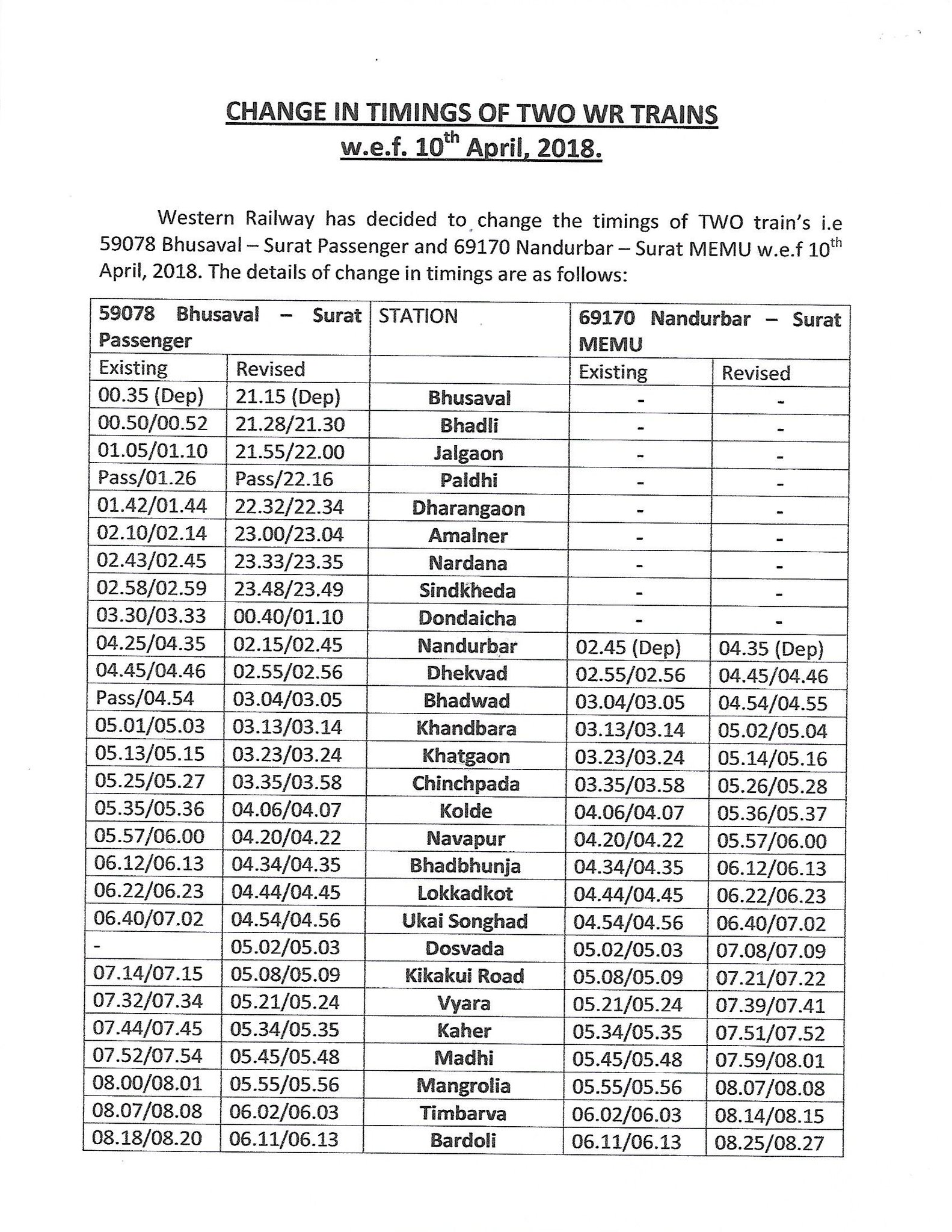 Western Railway On Twitter Change In Timing Of 59078 Bhusaval